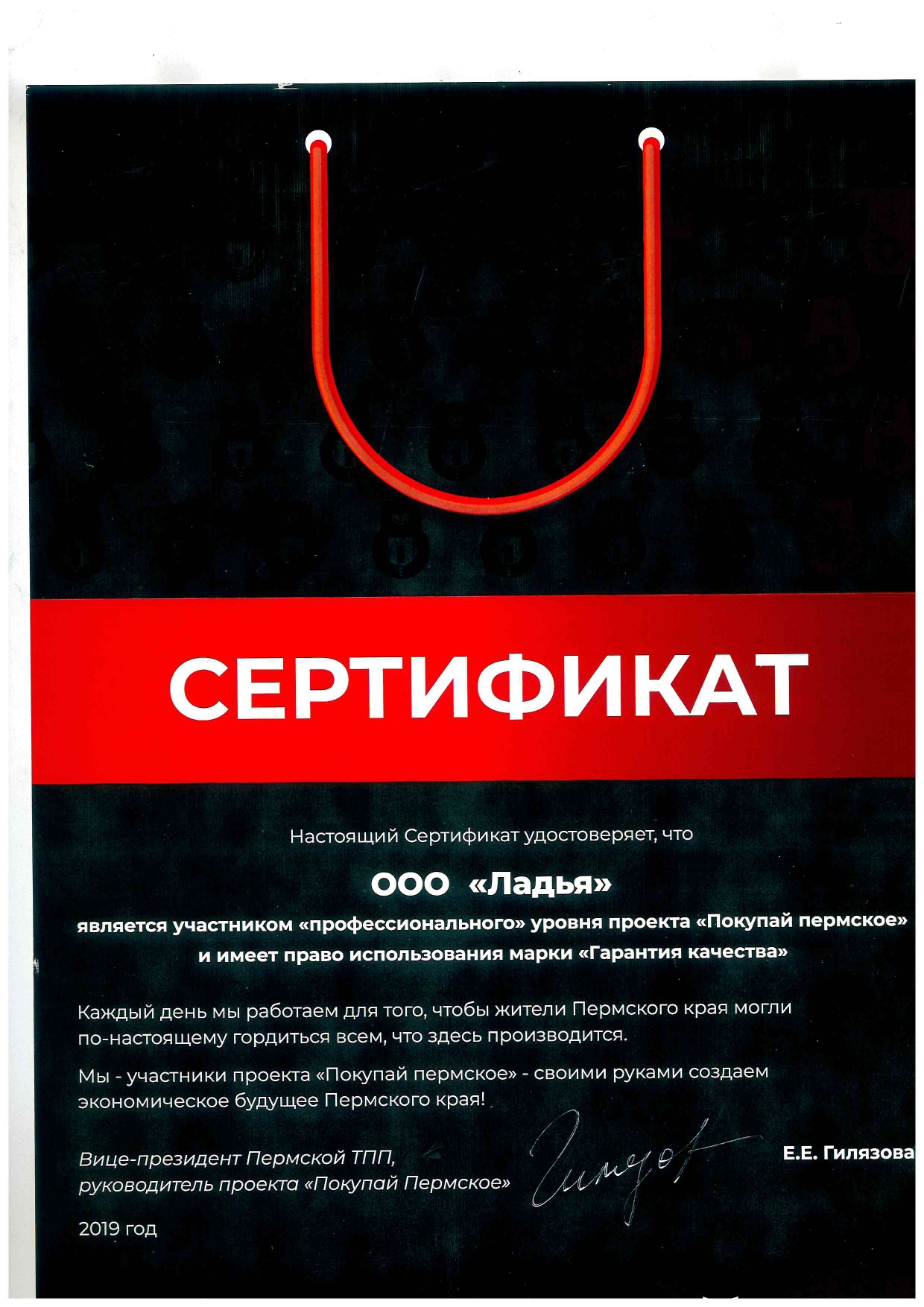 «Каждый день мы работаем для того, чтобы жители Пермского края могли по-настоящему гордиться всем, что производится здесь. Мы — участники проекта «Покупай пермское» — своими руками создаем экономическое будущее Пермского края.»