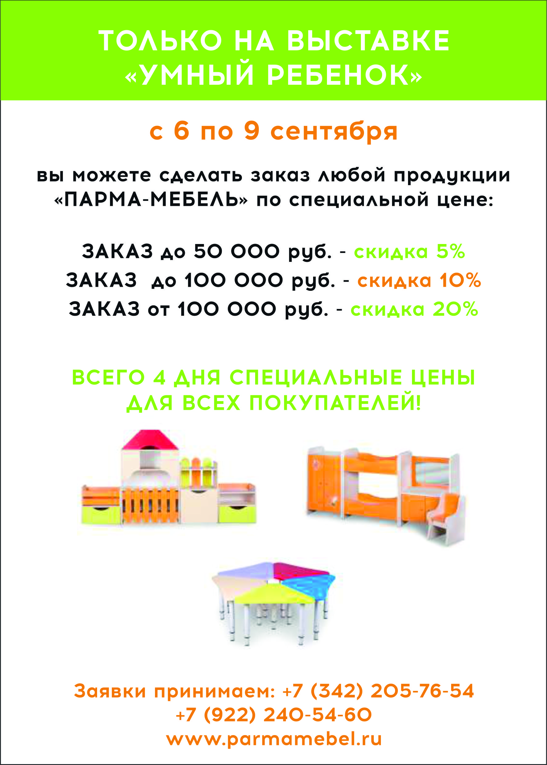 Только с 6 по 9 сентября вы можете сделать заказ любой продукции «Парма-Мебель» по специальной цене!