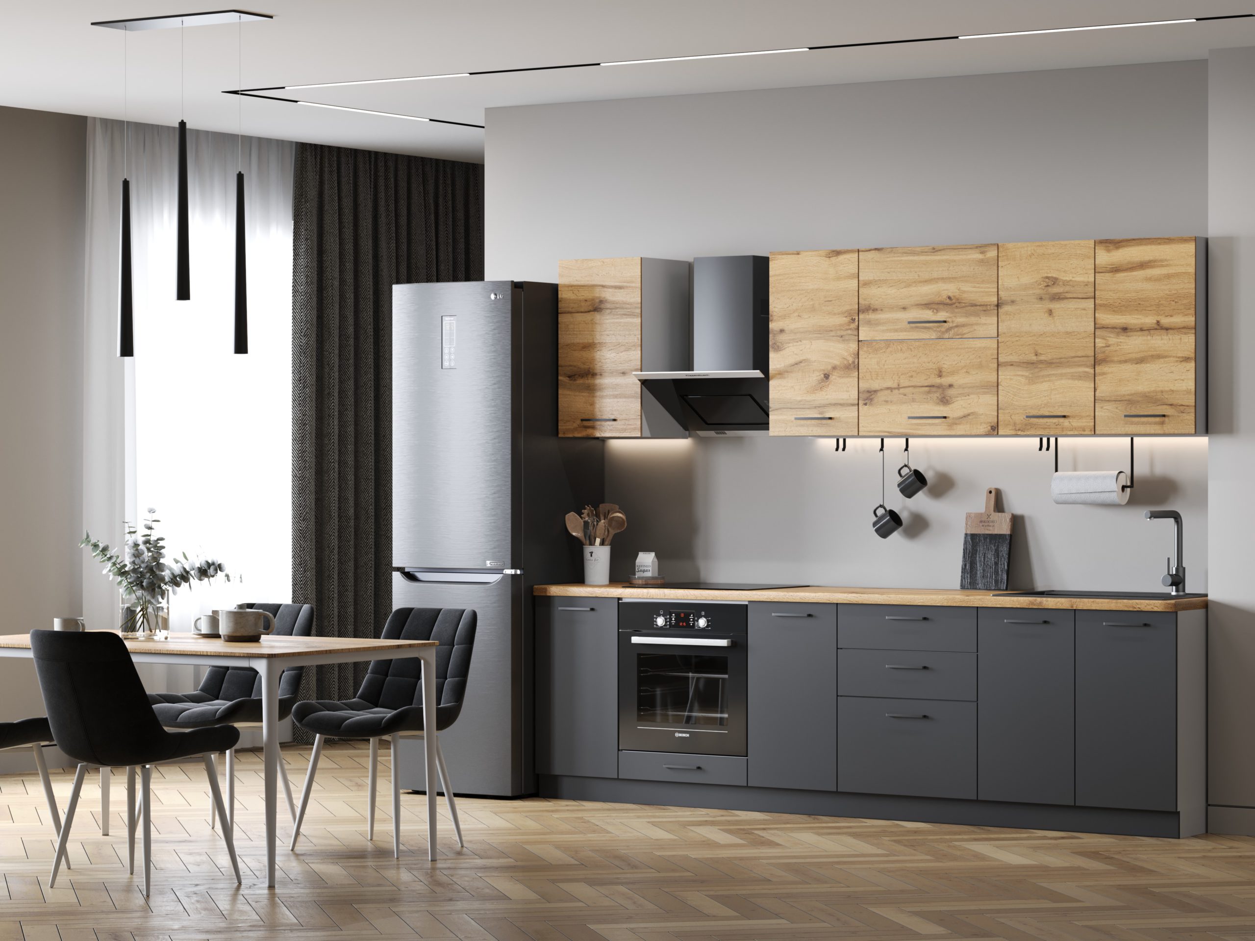 Модульная кухня — это набор кухонной мебели, где каждый элемент выбирается индивидуально. Приобретая модульную кухню, Вы не ограничены одним вариантом компоновки гарнитура. Также благодаря модульной системе Вы всегда сможете легко обновить Вашу кухню. Эта кухня никогда не надоест!