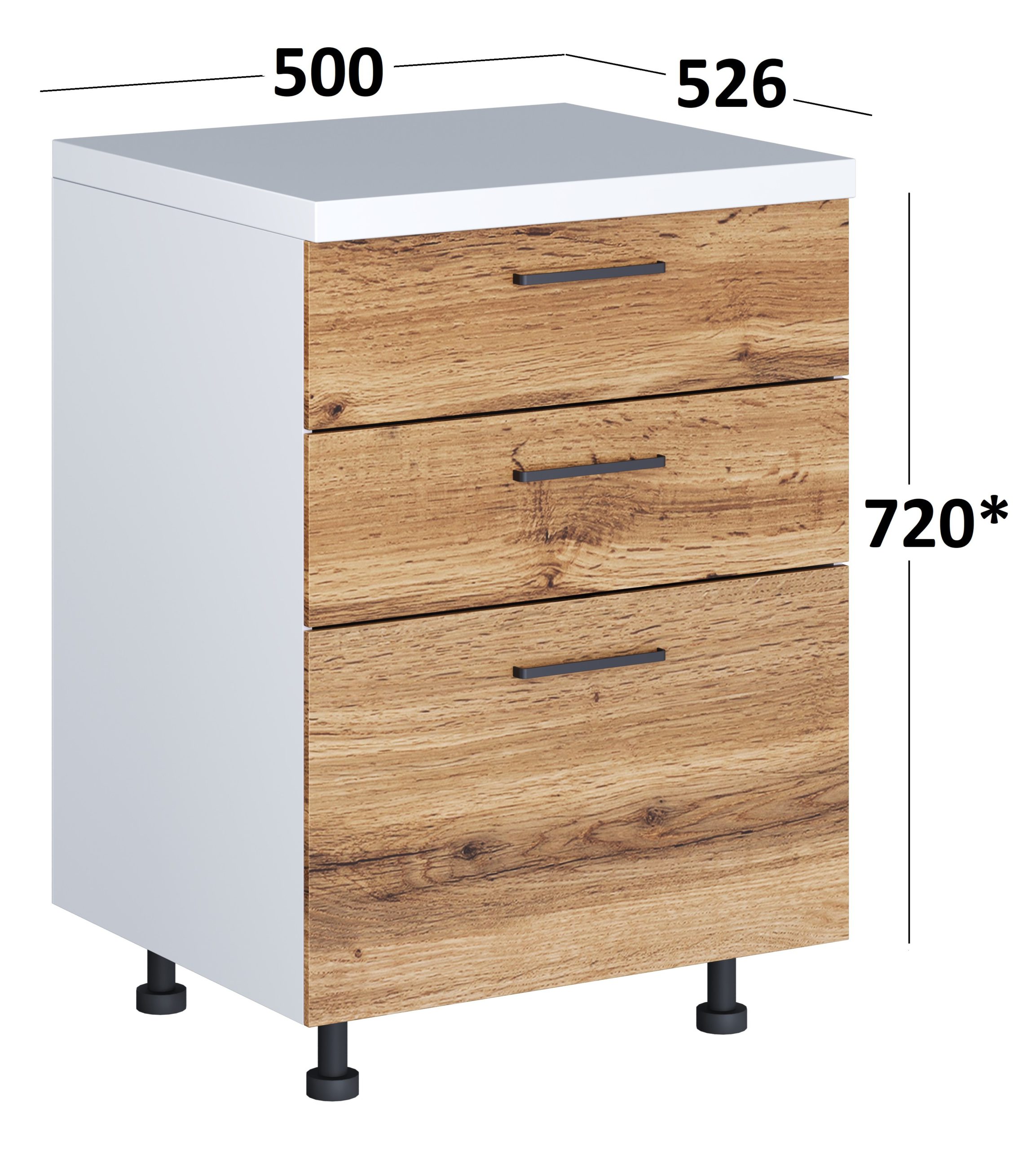 Нижний шкаф 500 мм с 3мя ящиками с фасадами ЛДСП (комплект) Дуб Вотан