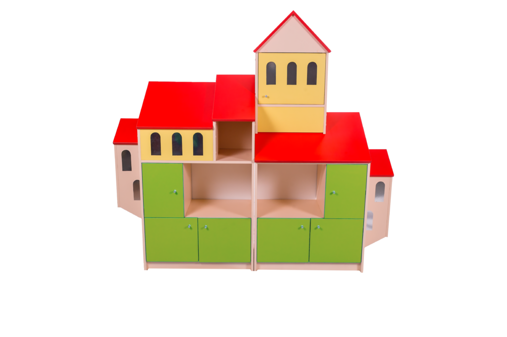 - Много доступных открытых зон для размещения книг, игрушек